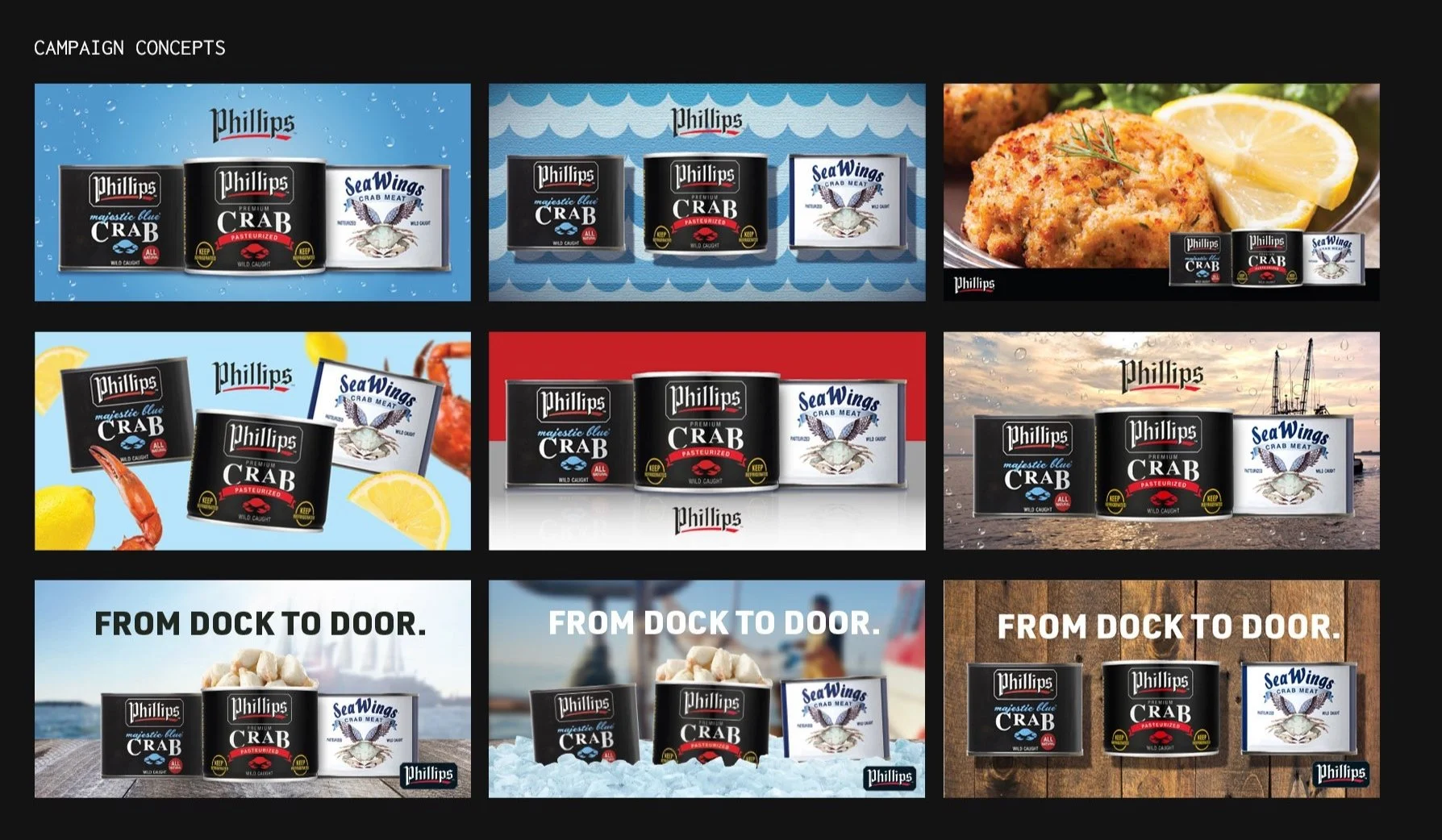Targeted ads for Phillips Foods which will be featured on the DOT Foods website and emails. Concepts and key assets were created to help expand and foster overall brand awareness for Phillips Foods. The theme of these ads focused on the fresh quality of their products. Created at Harvey Agency.
